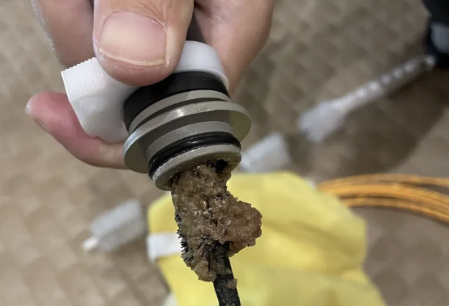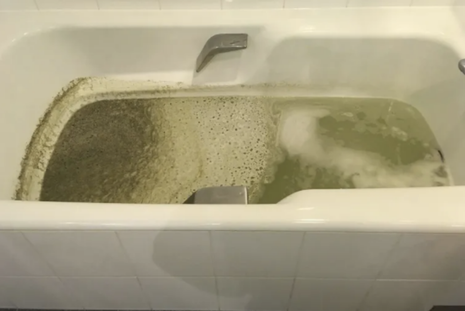 実は洗剤やブラシを入れても機械の中にべったりした汚れや糸くずなど汚れが残っている場合があります。多くは水流スイッチの裏側やポンプの中で洗剤の行き届かないところです。菌の数の測定をして検出されなくても機械の中の水流スイッチやポンプの中に糸くずや入浴剤など菌の数では分からない無機物等の汚れが残っていて少しずつ出てくる場合があります。また菌の数字が下がらない場合は水流スイッチやポンプ内部から汚れが少しずつ溶け出している場合があります。洗剤で全て落ちることはありません。